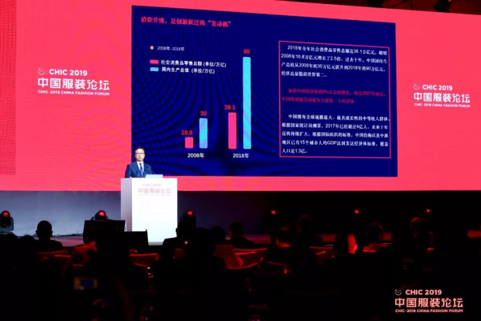 4月1日,北京中國(guó)大飯店,CHIC·2019中國(guó)服裝論壇開(kāi)幕,主題為“創(chuàng)新躍遷,邁向下一個(gè)十年”。中國(guó)紡織工業(yè)聯(lián)合會(huì)會(huì)長(zhǎng)孫瑞哲,中國(guó)紡織工業(yè)聯(lián)合會(huì)副會(huì)長(zhǎng)、中國(guó)服裝協(xié)會(huì)會(huì)長(zhǎng)陳大鵬,中國(guó)服裝協(xié)會(huì)常務(wù)副會(huì)長(zhǎng)楊金純,中國(guó)服裝協(xié)會(huì)顧問(wèn)蔣衡杰,中國(guó)服裝協(xié)會(huì)秘書(shū)長(zhǎng)焦培等行業(yè)、企業(yè)代表參會(huì)。