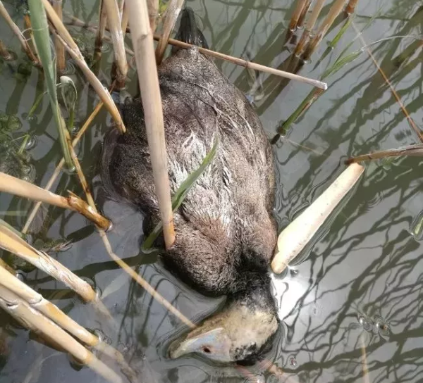 △被彈弓射殺的白頭硬尾鴨 (荒野新疆供圖)